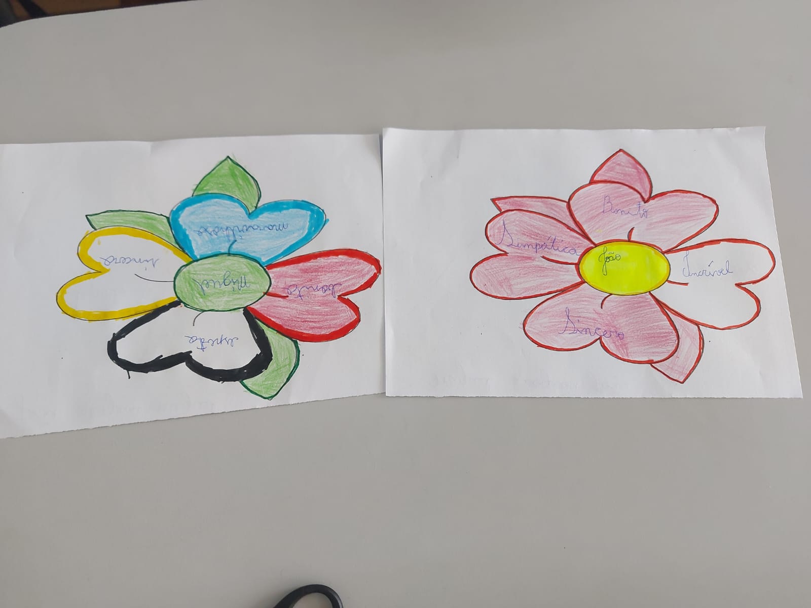 Então orientei a atividade onde cada um recebeu uma flor, no meio escreveram seus nomes e em cada pétala um elogio para si mesmo. Compartilharam com muita vergonha no grande grupo. Após trocaram a suas flores com um colega,em dupla,realizaram a mesma atividade só que elogiando dessa vez um colega ao outro.